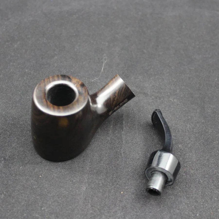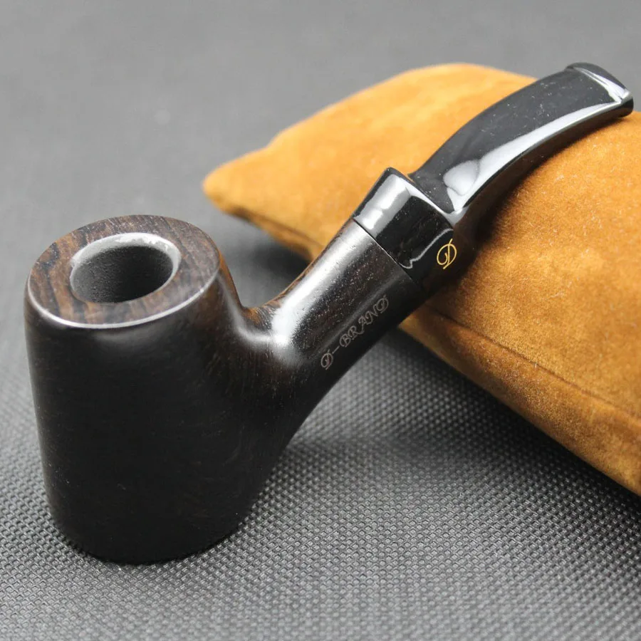 Трубка для курения ручной работы с плоским дном из натурального черного дерева, трубка для курения с круглым дым табаком, Подарочная деревянная трубка, 10 шт. фильтров 9 мм + чехол + держатель #480S