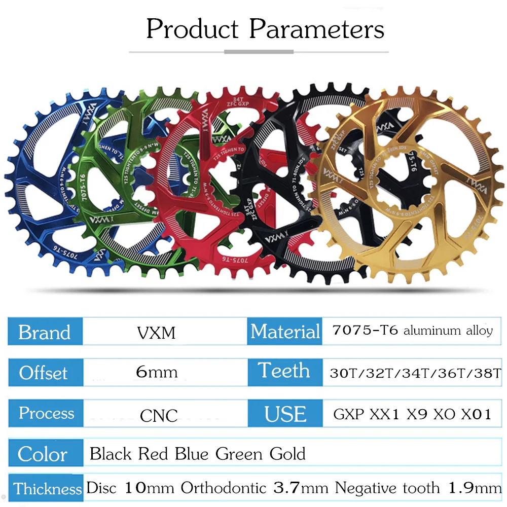 Передняя звезда VXM для велосипеда, узкая широкая круглая передняя звезда 30T- 38T 40T для SRAM GXP XX1 XO1 X1 GX XO X9, смещение коленчатого вала 3 мм 6 мм