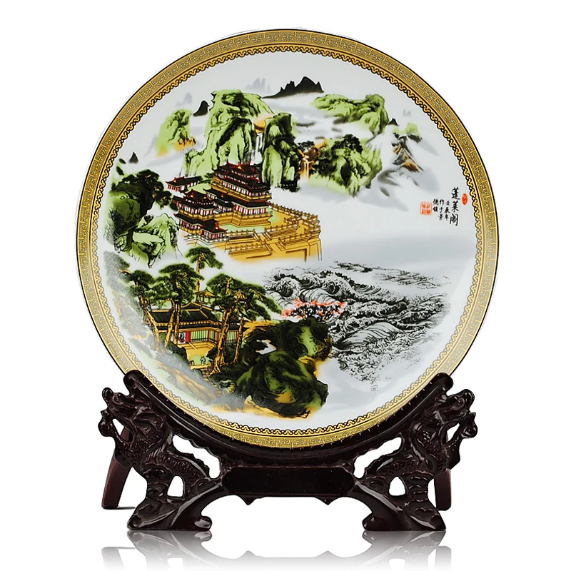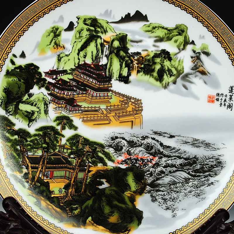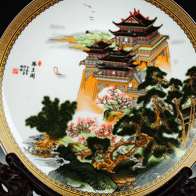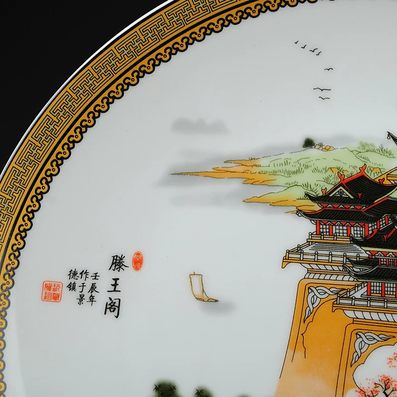 Керамическая подвесная тарелка Jingdezhen в виде пейзажа, желтая башенная подвесная тарелка для гостиной, гостиницы