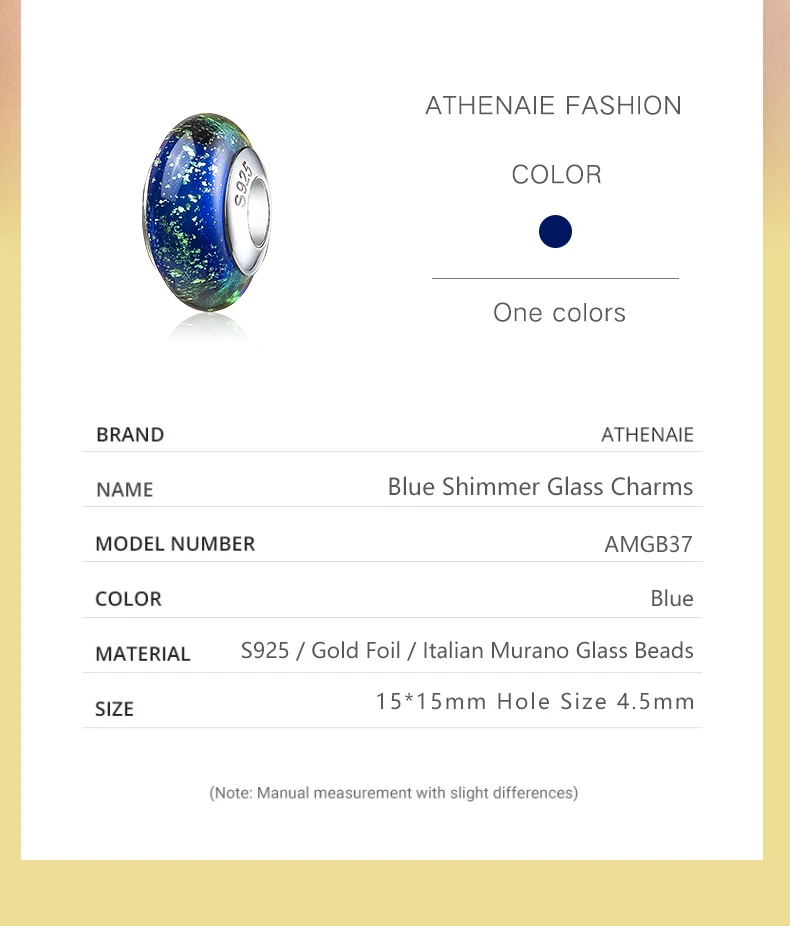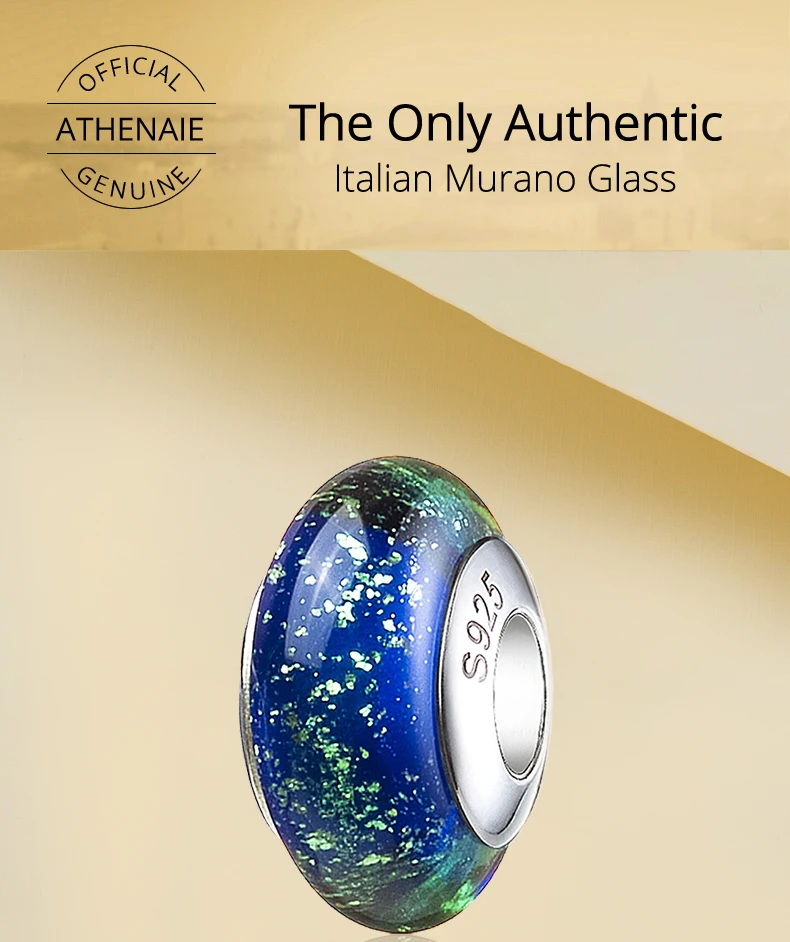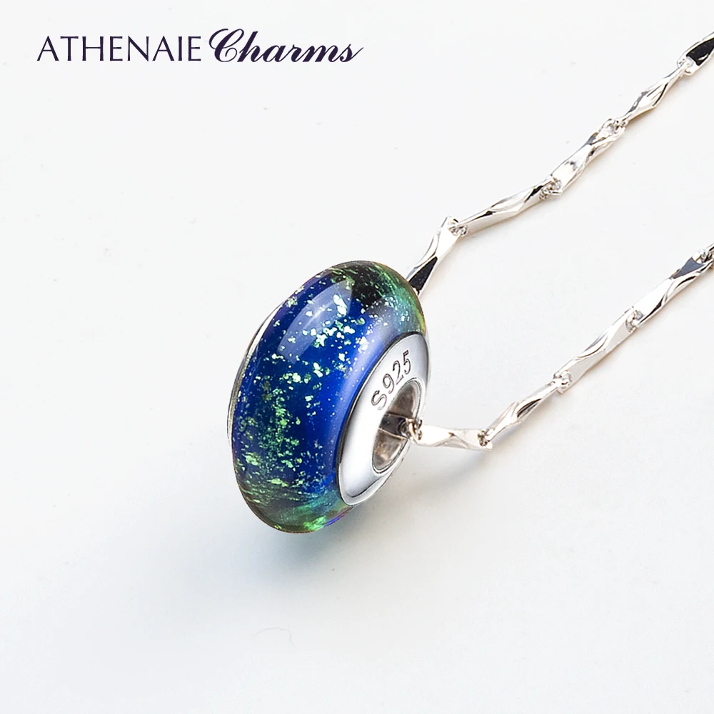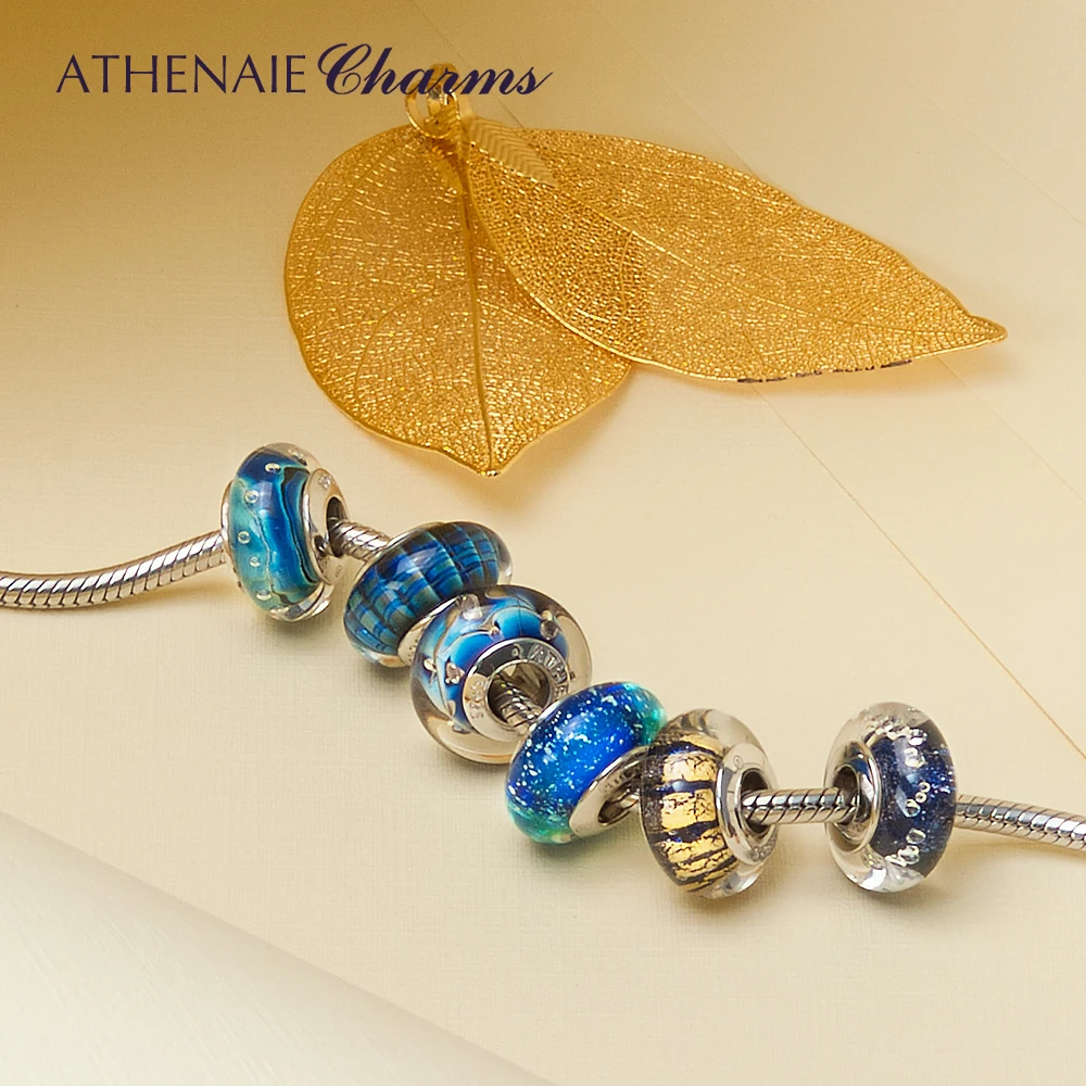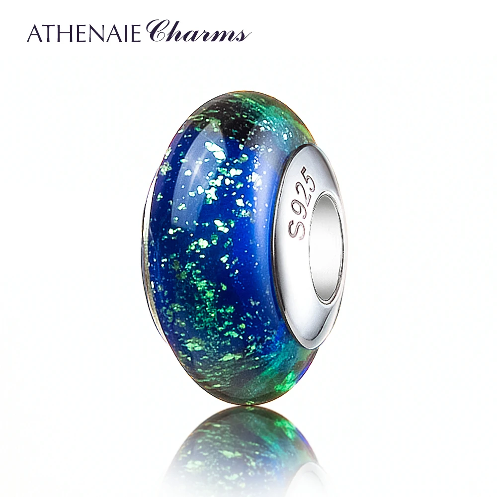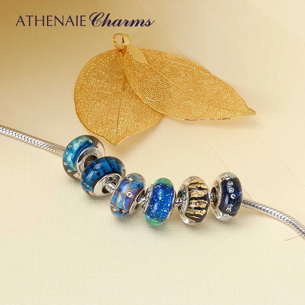 Подвески ATHENAIE из муранского стекла, серебро 925 пробы, золотой песок, бусины, подходят для всех европейских браслетов, синий цвет, подарок на Рождество