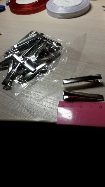 хорошие заколки. пришли быстро. единственное, на них практически нереально приклеить бант... супер клей даже не хочет держать...