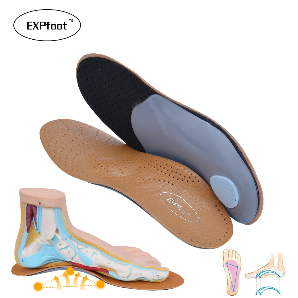 Ортопедические стельки для мужчин и женщин, из натуральной кожи, с высоким сводом стопы