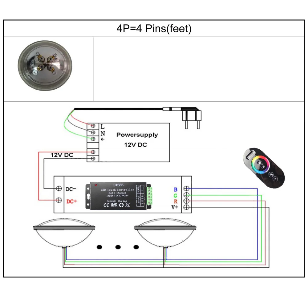 1. Это для RGB 4P без удаленной версии.2. Лампа работает только в DC12V, а не в AC12V.3. Внешний RGB контроллер и Пульт ДУ не включены, клиенты должны иметь или покупать их отдельно.4. Кабель каждого цвета должен быть подключен к контроллеру правильно.