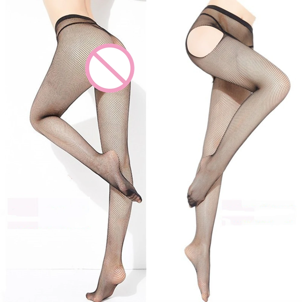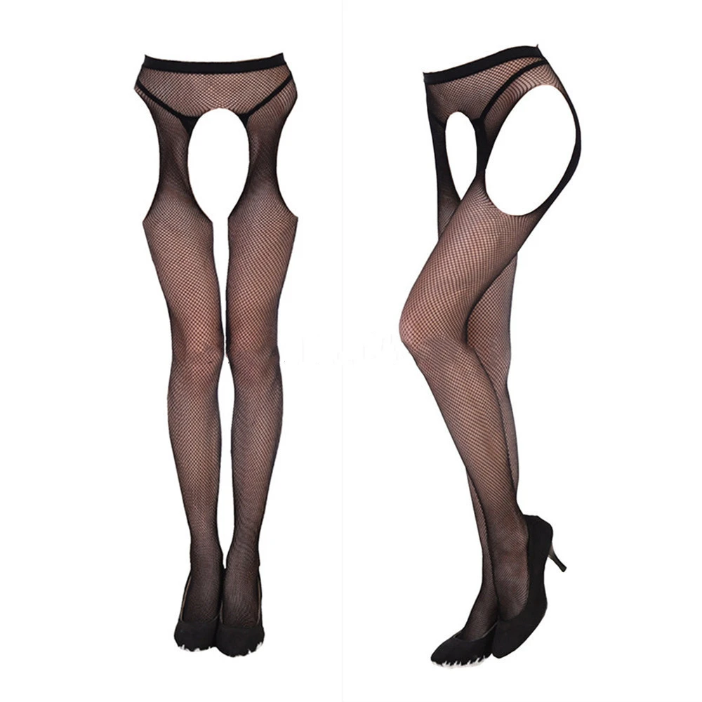Черная ажурная сетка MwOiiOwM с открытой промежностью, обтягивающие эластичные чулки без промежности, трусики, колготки, сексуальные для девушек