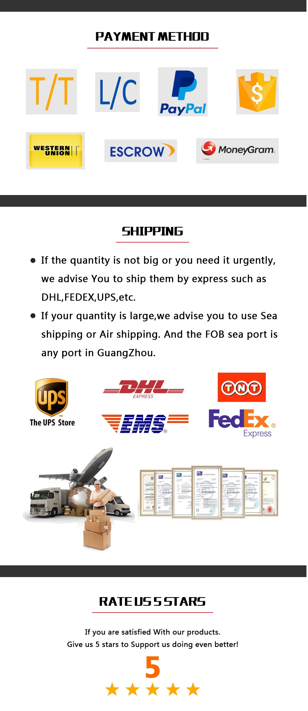 В: что такое «Другой» вариант вилки?О: если ваша страна не относится к евро, американскому, английскому, австралийскому, вы можете выбрать «Другой», а затем оставить нам сообщение о том, какой тип вилки вам нужен.Вопрос: влияет ли неточная информация покупателя?О: Да, вам будет сложно получить товар или вы не получите товар. Поэтому покупатель должен указать правильный номер телефона, адрес, почтовый индекс.В: почему цена продукта низкая?О: потому что мы прямые продажи с фабрики, гарантируем высокое качество и низкую цену.В: Я хочу отменить заказ, что мне нужно сделать?О: Пожалуйста, выберите «другую» причину на странице заказа и запросите возврат средств.В: Могу ли я настроить логотип?О: Да, мы можем. Если вам нужен индивидуальный логотип, пожалуйста, свяжитесь с нами.Вопрос: Что делать, если есть таможенные вопросы?О: вы можете заранее спросить меня о таможенных вопросах, и мы постараемся сделать все возможное, чтобы ответить и решить проблему для вас.В: что такое Удаленная область?О: курьерская компания не может охватить области распределения, которые требуют помощи сторонних вечерние или требуют больше рабочей силы и ресурсов. Доставка в отдаленные районы требует дополнительных сборов. Различные региональные компании экспресс-доставки имеют различные стандарты зарядки. Дополнительные расходы на доставку в отдаленных районах оплачивает курьерская компания, а не продавец.