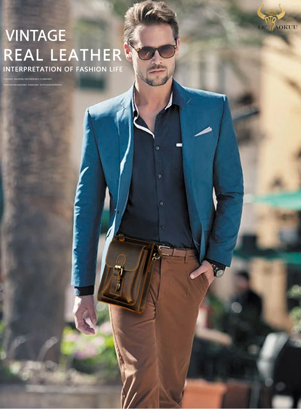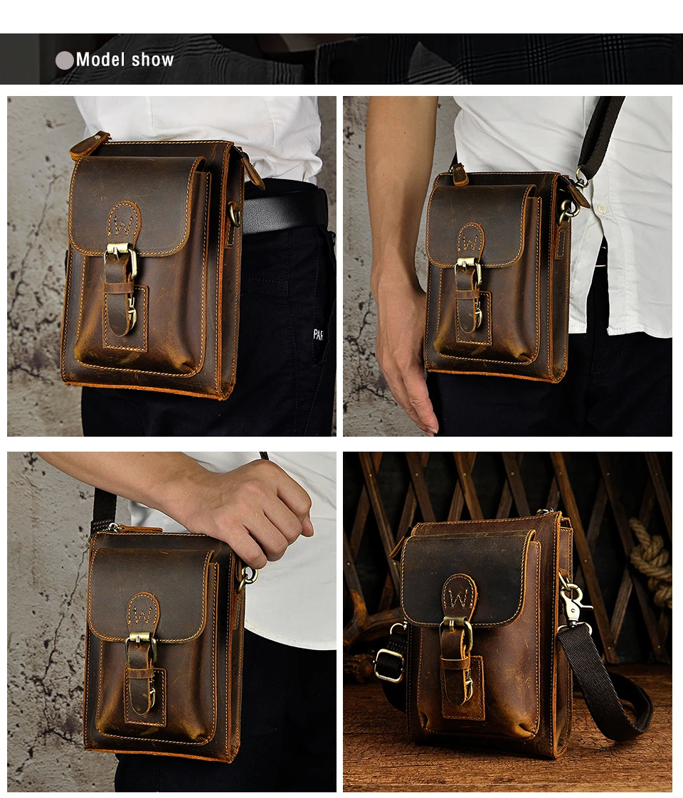 Сумка-мессенджер мужская из натуральной кожи, на одно плечо, 6402