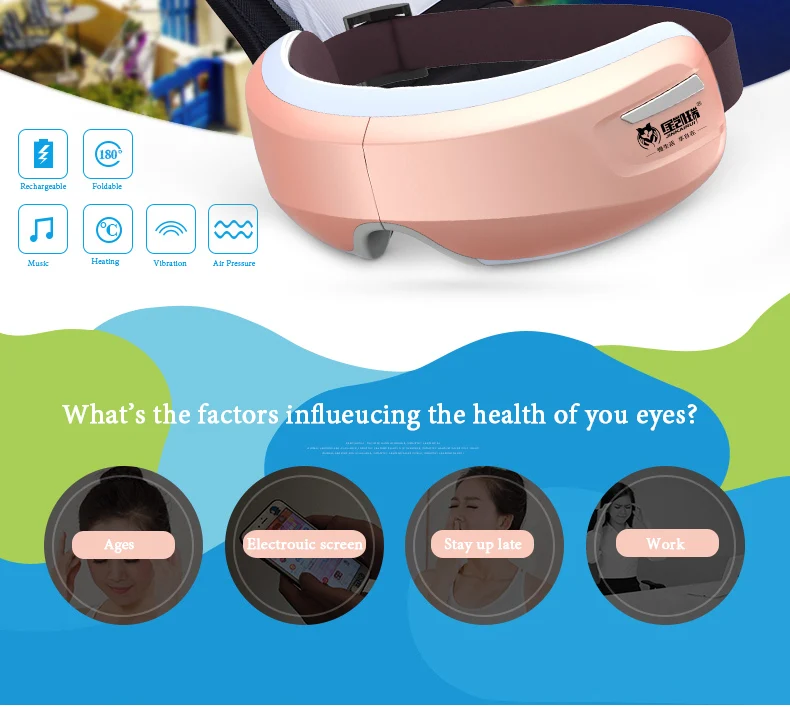 Бесплатная доставка, быстрая доставка, бесплатный возврат Перезаряжаемый Электрический массажер для глаз с воздушным давлением с Mp3 функциями беспроводной вибрации магнитного дальнего инфракрасного нагрева Usb очки