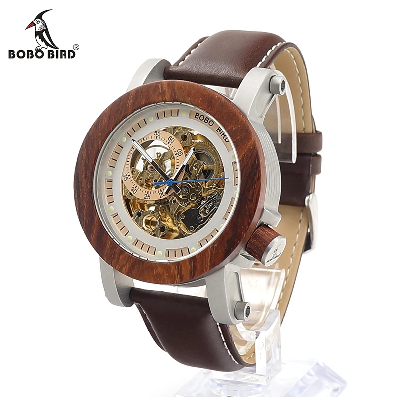 Деревянные часы BOBO BIRD, мужские полуавтоматические водонепроница...