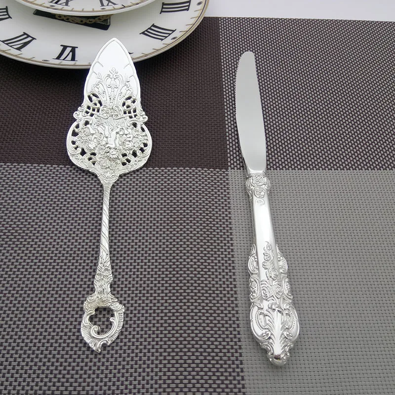 Серебряный нож для торта Лопата набор столовых приборов для свадебной вечеринки набор серебряных изделий серебряные столовые приборы Европейский классический набор барокко разделитель торта Тернер