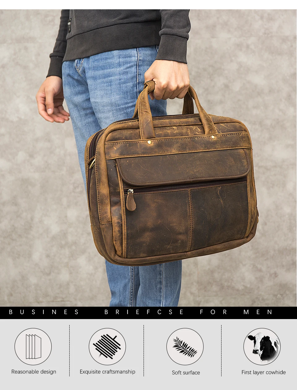 Мужской деловой чехол из вощеной кожи с масляным покрытием в античном стиле, чехол для ноутбука, документов, модная сумка-атташе, сумка-тоут, портфель 7146