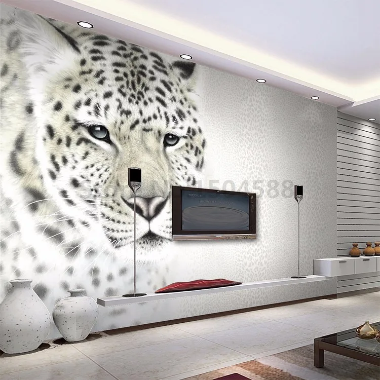 Фотообои с изображением белого леопарда, нетканые 3D обои по индивидуальному размеру для гостиной, ТВ, дивана, современный простой домашний декор