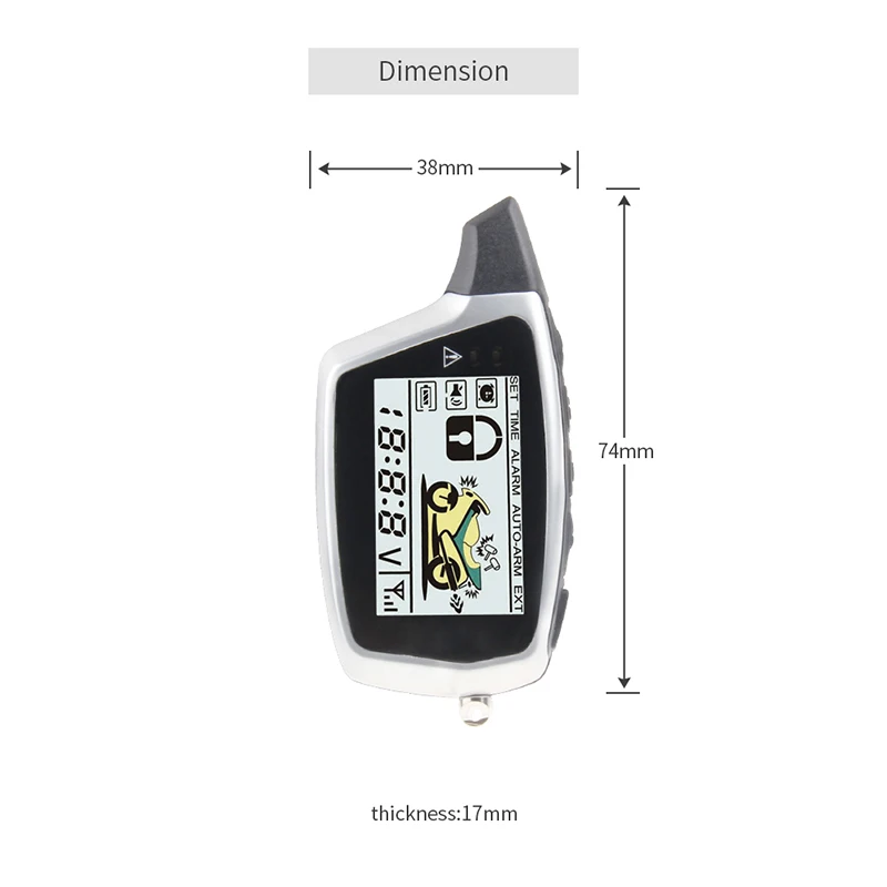 Это двухсторонняя сигнализация для мотоцикла EM212 от EASYGUARD с дисплеем ЖК-пейджер, функцией удаленного запуска двигателя, остановки и микроволновым датчиком. Сигнализация с перезаряжаемым передатчиком (передатчик перезаряжается только при установке с перезаряжаемой батареей AAA), вы также можете установить его с неперезаряжаемой сухой батареей AAA. Если это так, вы можете заряжать пульт дистанционного управления (передатчик)