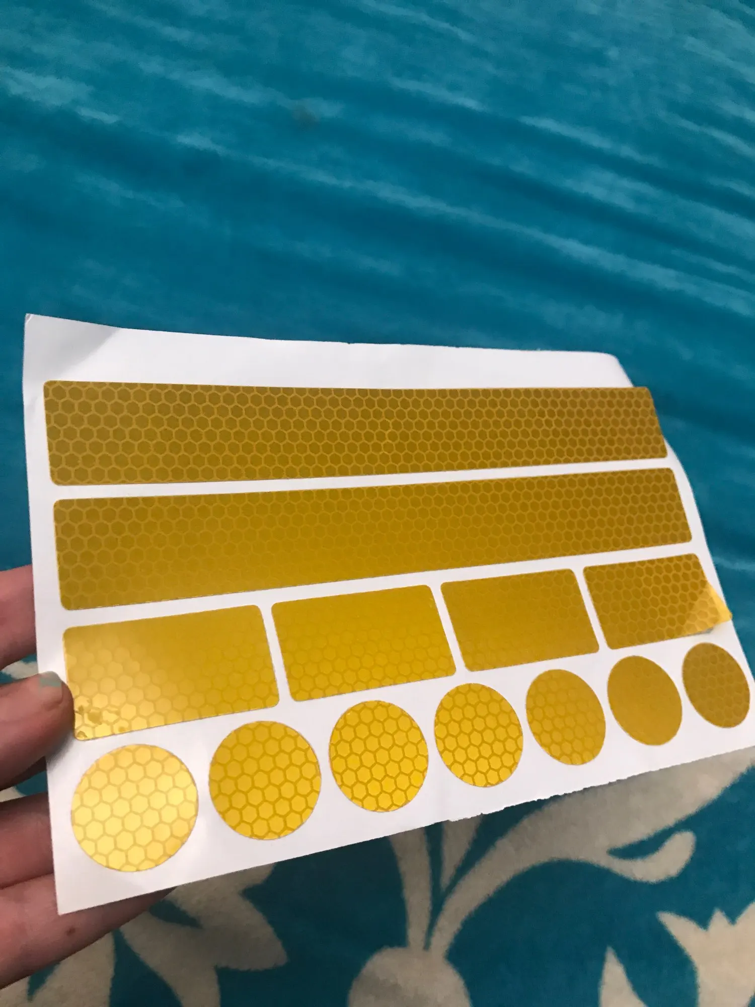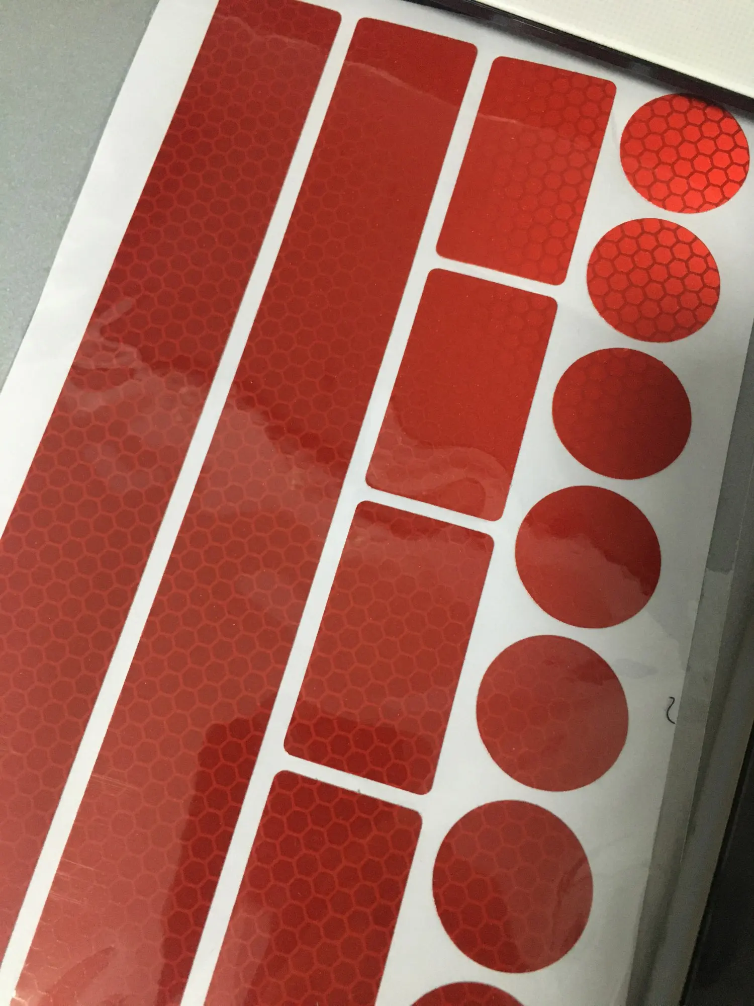 Товар прибыл быстро и соответствует описанию в рекламе. Имеет нормальную Рефлексивность и яркость и очень сильный клей (но материал наклеек твердый и гибкий, что делает клей начать ослабление при размещении на поверхности, а также изгиб трубки). Таким образом, решение проблемы заключается в том, чтобы разрезать эти наклейки 4 полосками, равными, если положить их в трубку, например.