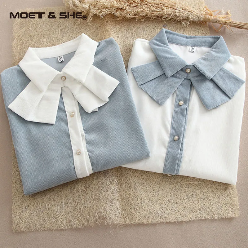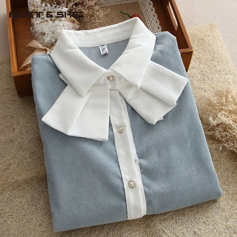 Женская Вельветовая блузка, с бантом и отложным воротником, с длинным рукавом, 6n8205y
