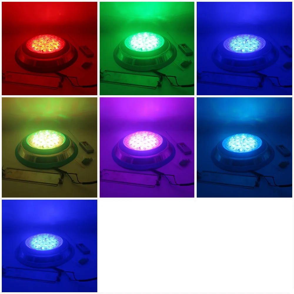 Входное напряжение: 12 В AC/DCСветодиодный бренд: SMD светодиодныйВерсии Ватт: 12 Вт/15 Вт/18 Вт/36 Вт/45 Вт/54 ВтЛюмен: 12 Вт = 1295лм, 15 Вт = 1423лм, 18 Вт = 1710лм, 36 Вт = 3040лм, 45 Вт = 3230лм, 54 Вт = 3420лмРавен галогенному ватту: 12 Вт = 130 Вт, 15 Вт = 142 Вт, 18 Вт = 171 Вт, 36 Вт = 304 Вт, 45 Вт = 323 Вт, 54 Вт = 342 ВтМатериал корпуса лампы: нержавеющая сталь + резиновое кольцо (белый или синий)Размер лампы: d300xh70ммЧастота дистанционного управления: 433 ГцАккумулятор для пульта: 12 В, 23A/27AКласс водонепроницаемости лампы: IP68 (можно положить непосредственно в воду).Длина силового кабеля: 1,5 метрГарантия: 2 годаСрок службы: 50000 часовСплошной цвет (один цвет): теплый белый (2700-3500K), чистый белый (5500-6300K), синийНесколько цветов: RGB 2 Вт с пультом дистанционного управления, RGB 4 Вт без пульта дистанционного управления