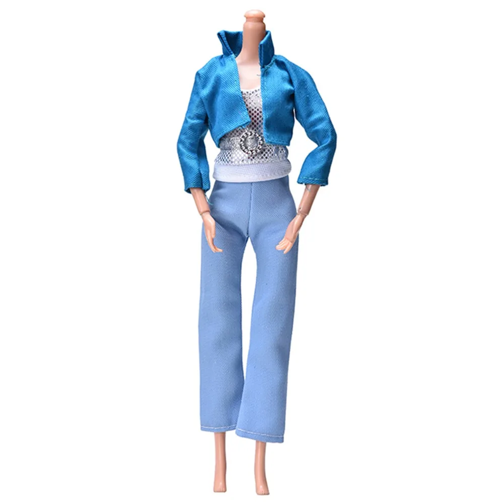 3 шт.лот одежда ручной работы для кукол синее пальто светло-голубые брюки Серебряный жилет для кукол высокое качество