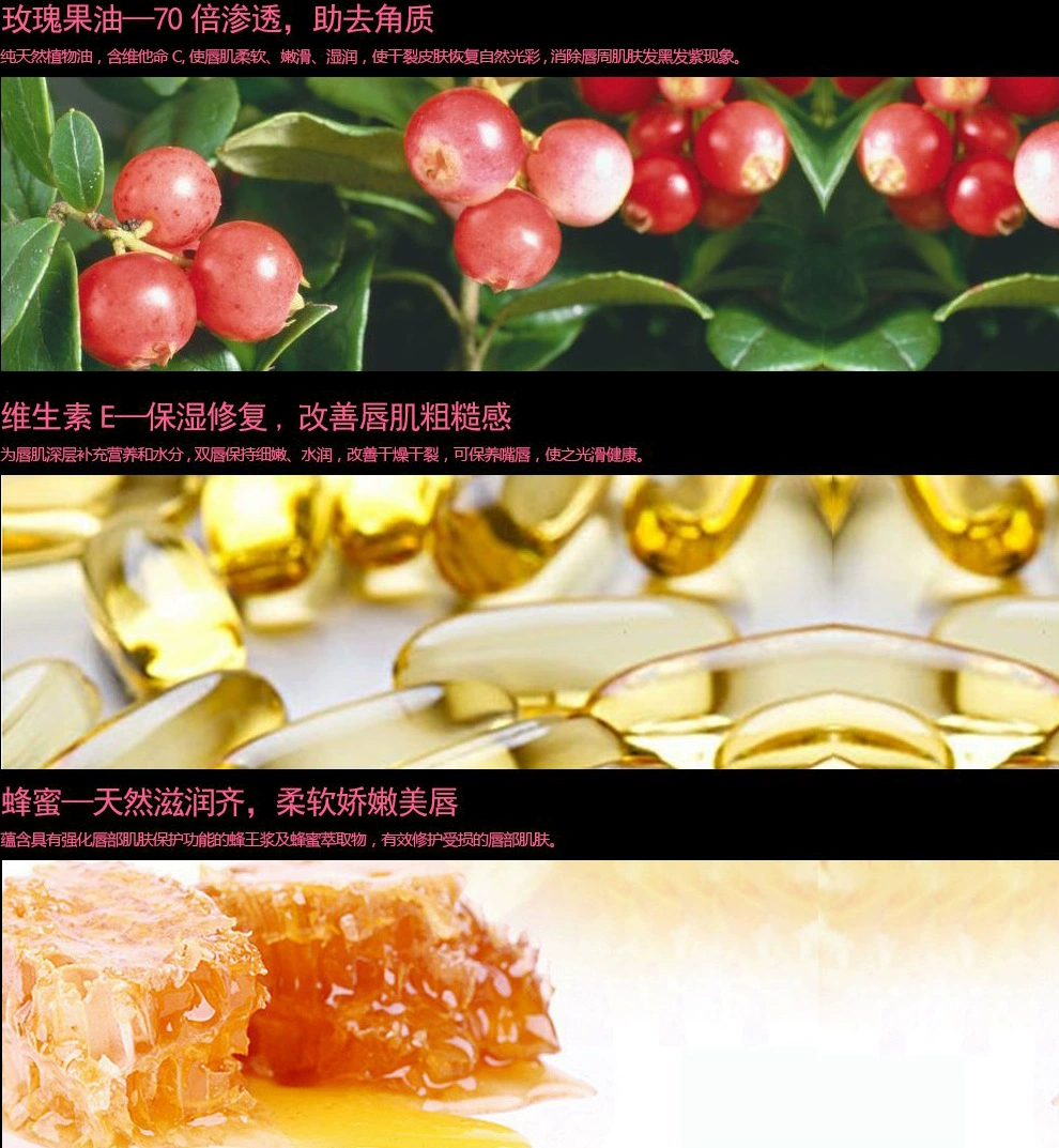 Содержит антиоксидантный витамин Е, увлажняющий, стойкий, чтобы сохранить губы мягкими и влажными.