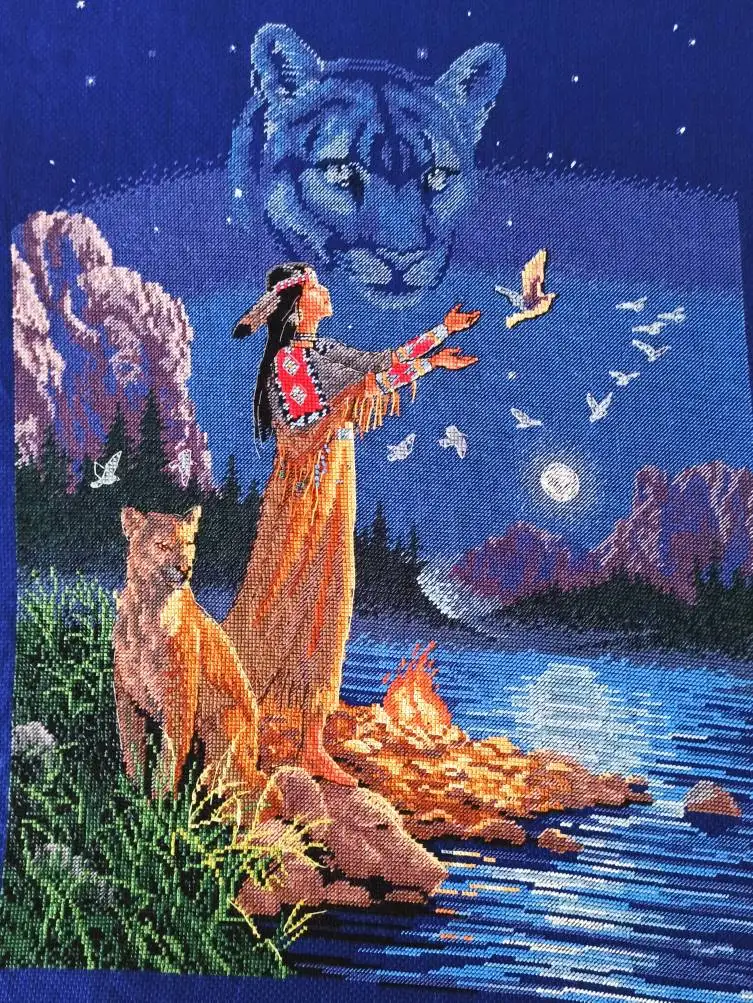 Высококачественный красивый набор для вышивки крестом, скрытые духи, животные, тигр, птицы, луна, озеро ночью, тусклый 35055