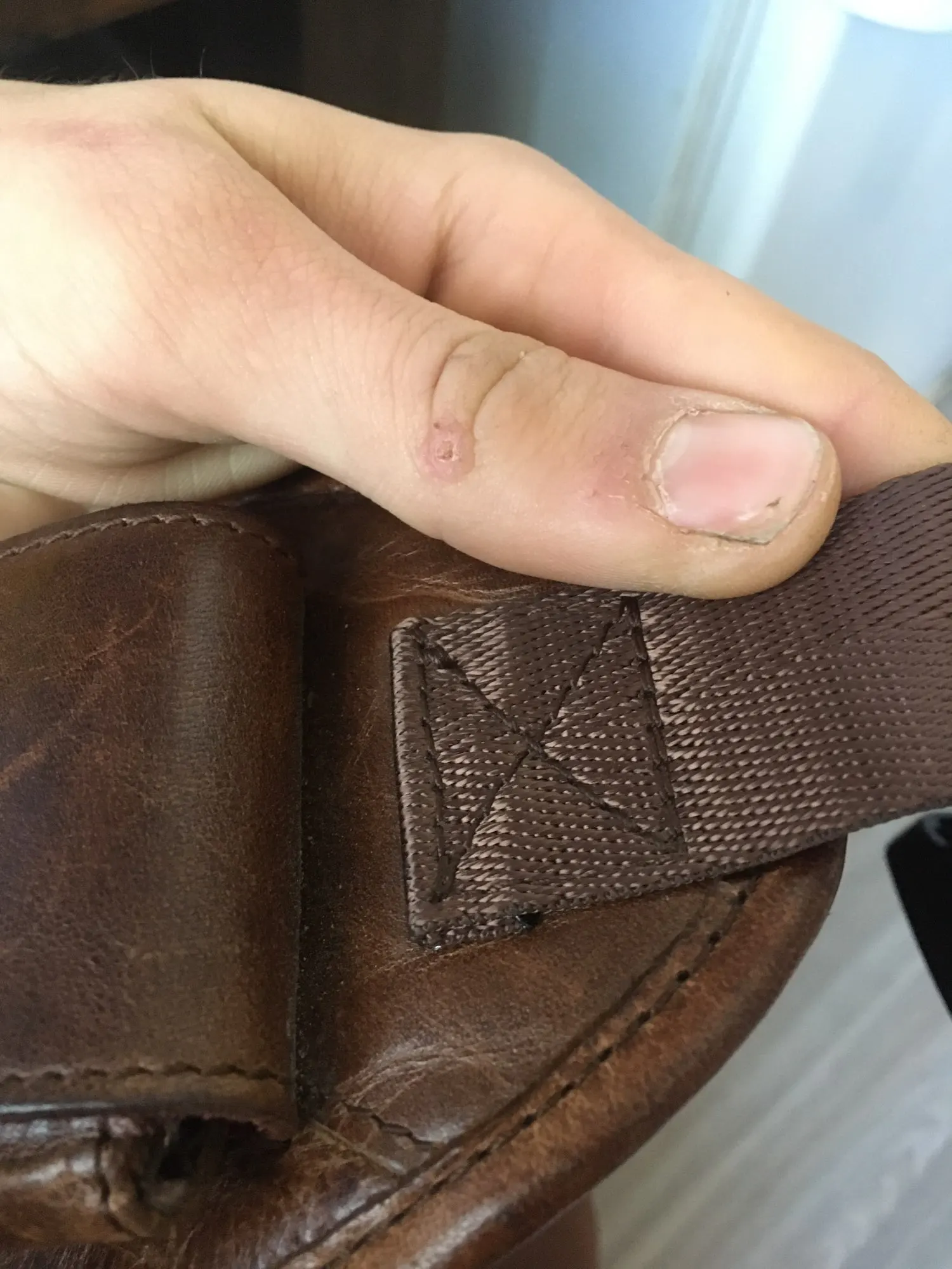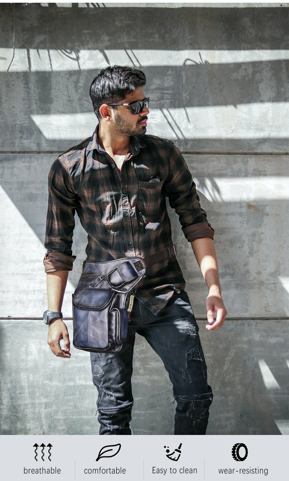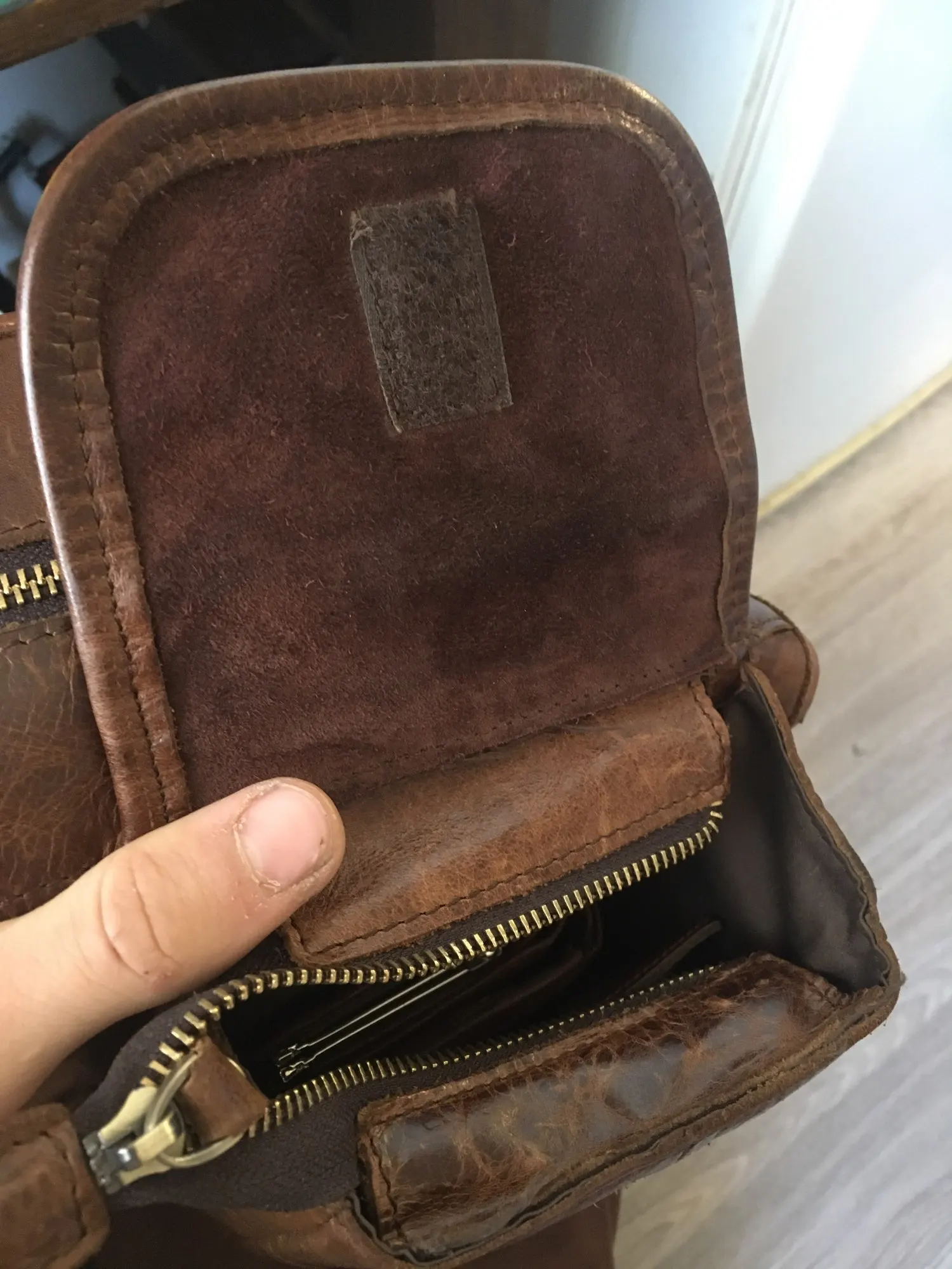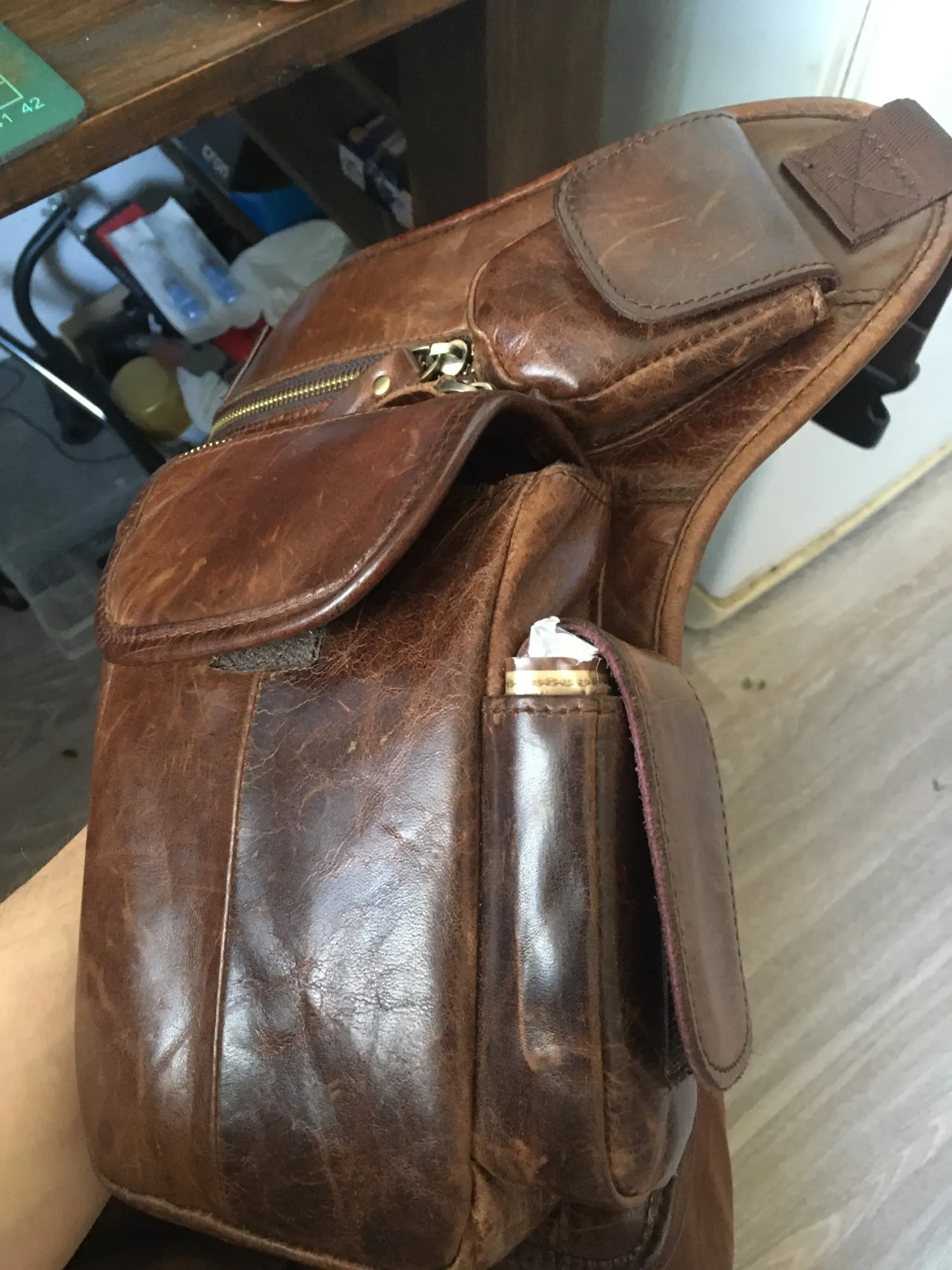 Сумка отличного качества. Был приятно удивлён. Материал типа «кожа» очень на неё похож, плотный и износостойкий. Молнии и липучки в порядке. Единственное, липучка на большом кармане могла быть и побольше. Часто отклеивается, но содержимое спасает молния. Современный телефон влазит только в большой карман. Боковой нижний идеален для пачки сигарет:D. Карман прилегающий к бедру, под молнией, неудобен. Рука с трудом туда влазет, поэтому там храню, только то, что нужно крайне редко. Товар и продавца рекомендую.