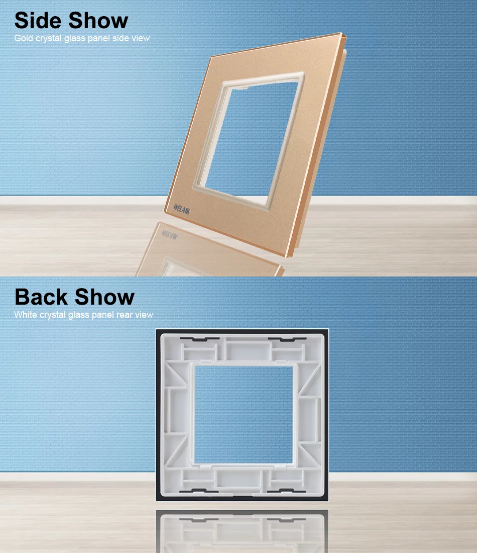 К сожалению, на черном стекле есть твердое имя в серебряных буквах. Довольно хорошее качество и электрические розетки, безусловно, подходят для круглой Европейской электрической коробки