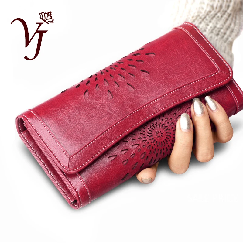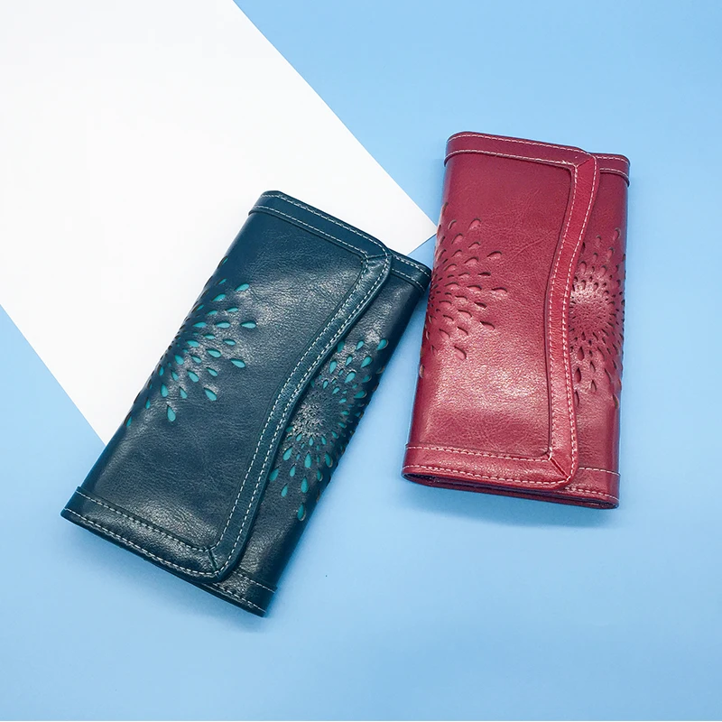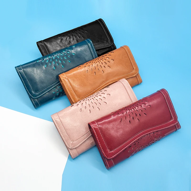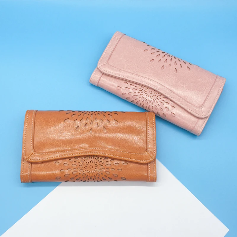 Кошелек женский, из коровьей кожи, с вырезами, в стиле ретро
