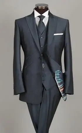 Новое поступление, мужская мода 2016, индивидуальный дизайн, пиковый костюм для выпускного вечера с отворотом, вечерний костюм, Мужские костюмы (пиджак + жилет + брюки + галстук)
