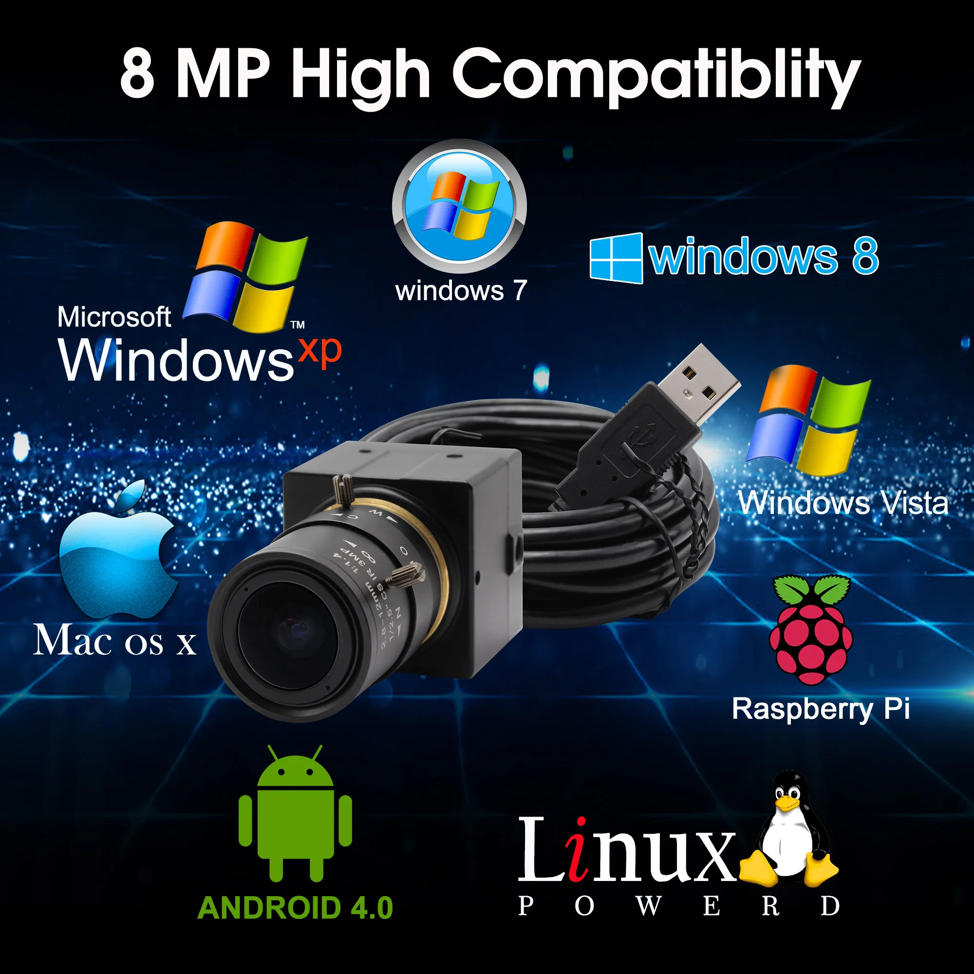 8MP Беспроводная hd-видеокамера SONY IMX179 usb видео камера супер мини коробка USB Веб камера с 2,8-12 мм объектив с переменным фокусным расстоянием для Android,Linux, оконные рамы