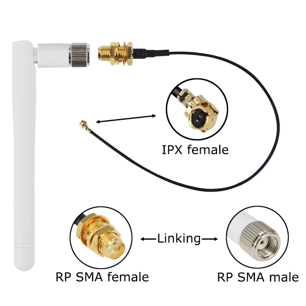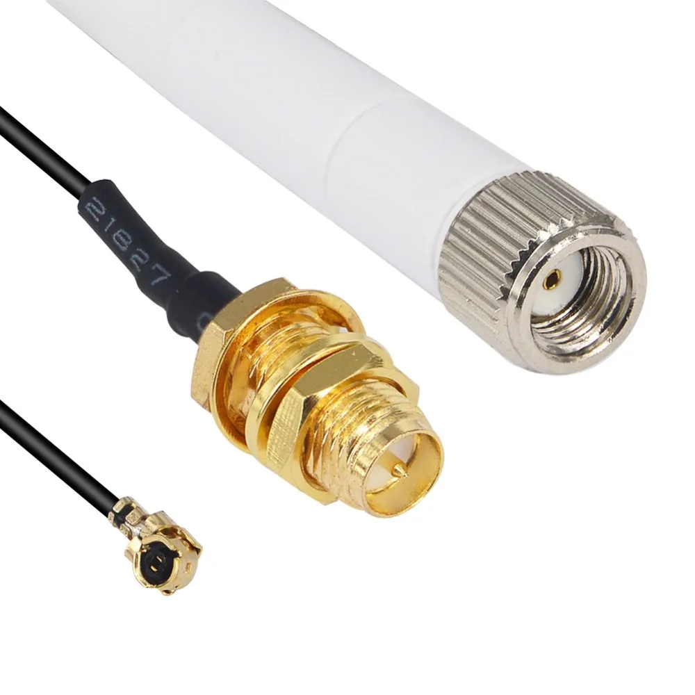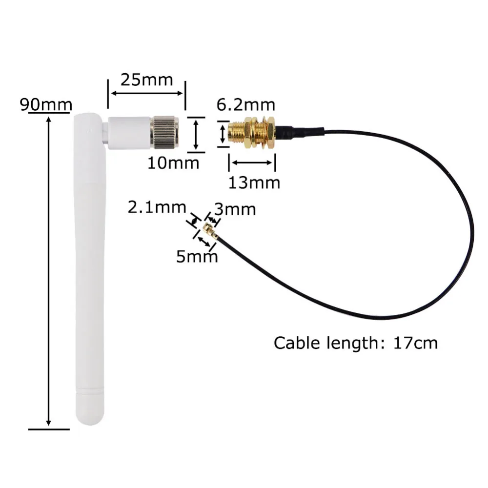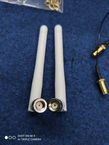 Хорошие антенны. Брал на замену стандартной сдвоенной антенны от ASRock для работы встроенной Wi-Fi карты на материнке ASRock Z370 Fatal1ty itx/ac. Работают лучше штатной, и сопли не тянутся от длиннющих проводов. Штатная на фото. Новые по длине 10.5 см от основания. И 8.5 см от точки перегиба.