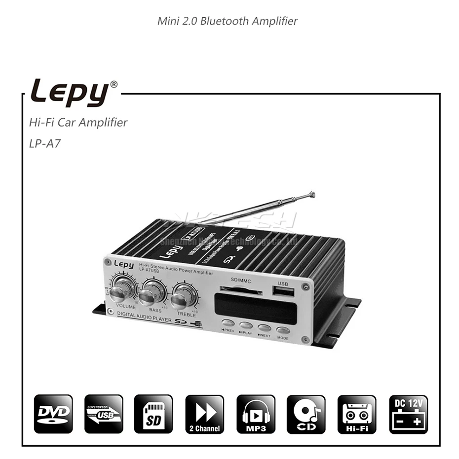 Цифровой плеер Lepy с разъемом USB LP-A7, Bluetooth 4,2, автомобильный усилитель мощности Hi-Fi, аудио, 2 канала, 20 Вт, RMS, домашний усилитель, SD, CD, DVD, MP3, FM