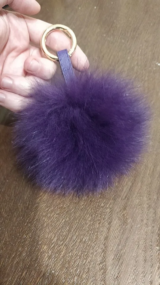 Брелок для ключей из натурального меха, 13-15 см, натуральный шарик из меха лисы пом, металлическое кольцо, подвеска для сумки, K010-purple