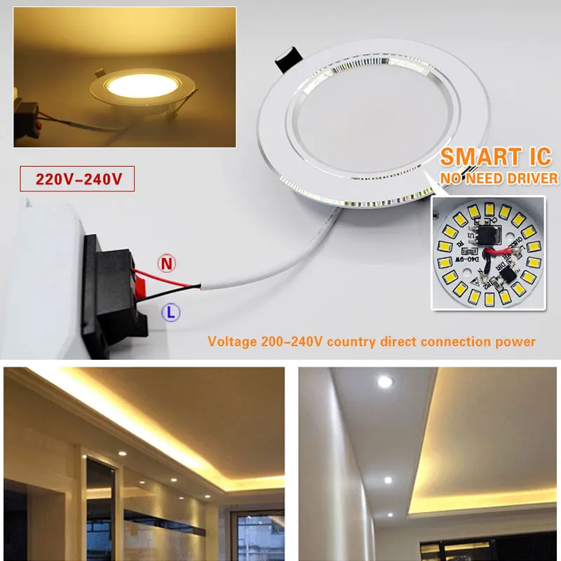 6 шт.лот светодиодный светильник 3 Вт 5 Вт 7 Вт 9 Вт 12 Вт 15 Вт 18 Вт 220 В 110 В светодиодная точечная лампа Встраиваемая домашняя лампа