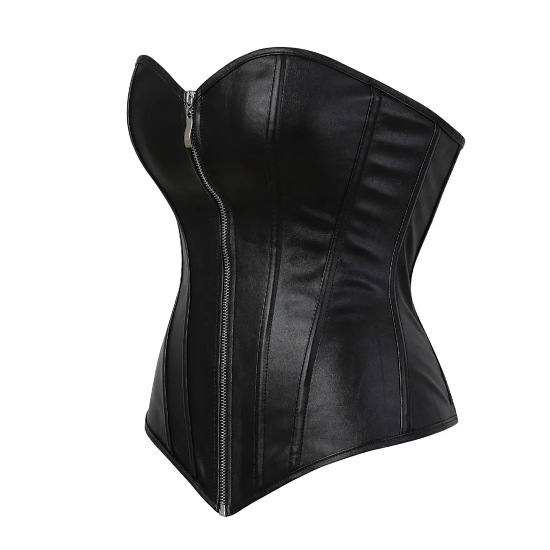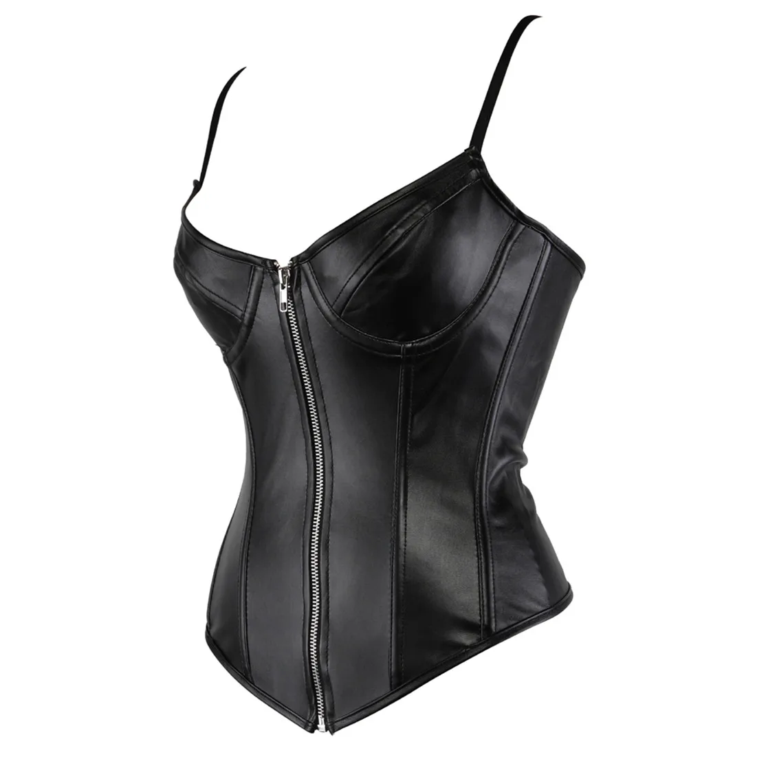 Корсет из искусственной кожи, сексуальное нижнее белье клубный бюстье, костюм на молнии, на шнуровке, топ для коррекции талии размера плюс