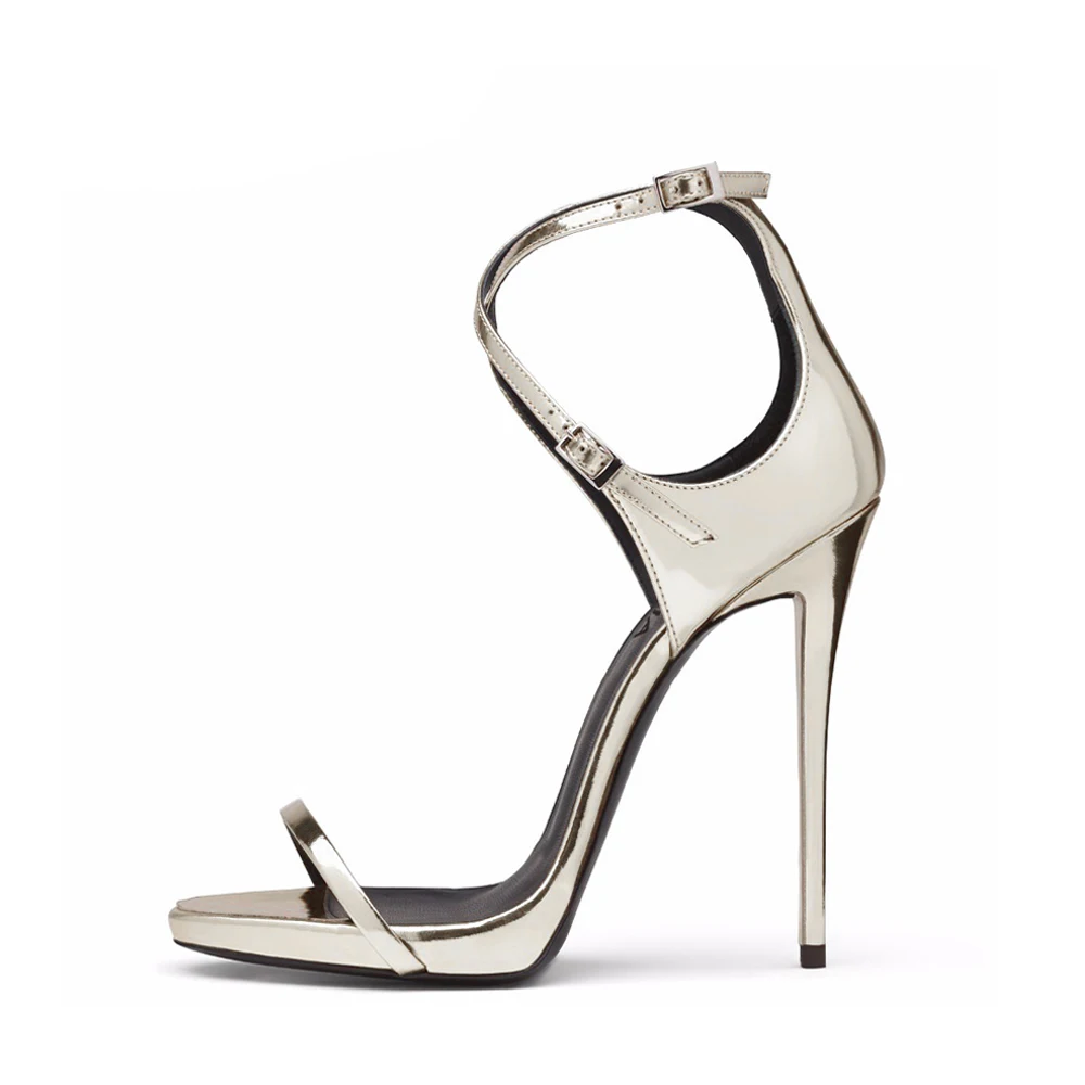 Босоножки женские на высоком каблуке, золотистые, серебристые, из лакированной кожи, на ремешках, вечерняя вечерние, большие размеры, лето 2021
