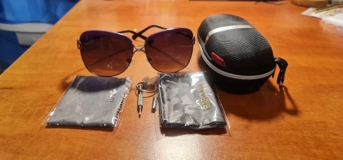Продавца рекомендую. Доставка быстрая около недели. Красивые очки, с удобным и качественным чехлом. Тряпочка, отвёртка. Всё классно. Искали и нашли эти очки на Али. Прежде покупали их в Оптике в 2 раза дороже. Сломали с помощью жопы. Теперь будем аккуратнее.