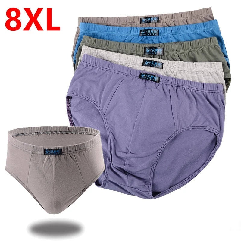 Мужское нижнее белье размера плюс, хлопковые треугольные трусы с высокой талией, большие размеры