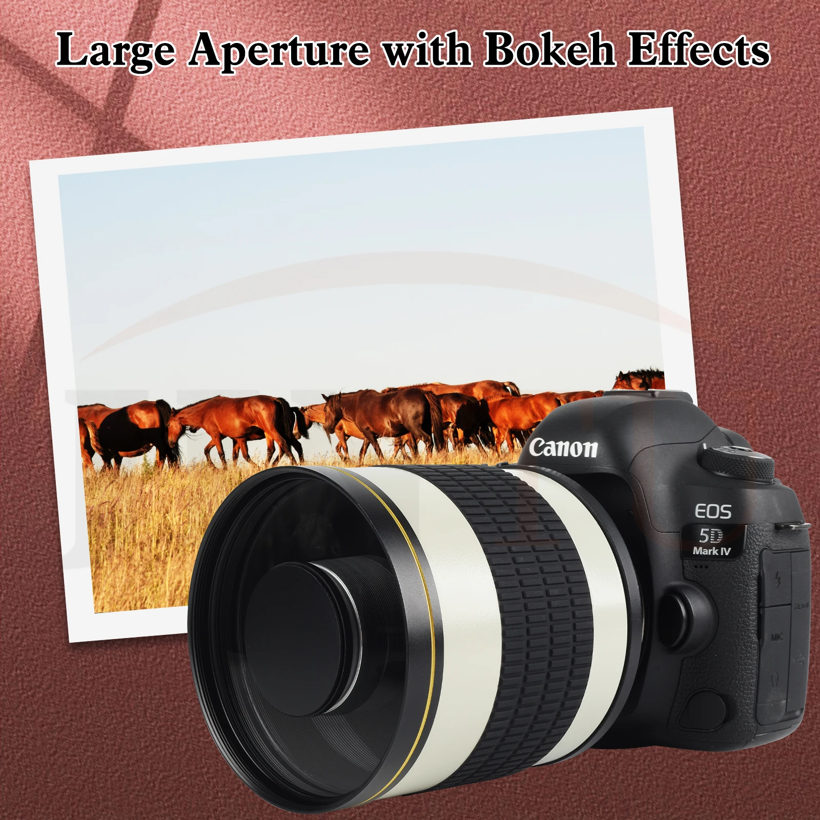 ЭтоJintu500 мм ручной ультра-телефото, зеркальный объектив с многослойным покрытием-это совершенно новый объектив. Невероятно компактный и легкий, этот объективИдеально подходит для занятий спортом и фотосъемки дикой природы. Он имеет фиксированную диафрагму f/6,3, которая быстрее, чем большинство других объективов 500 мм. Этот объектив крепится к вашей камере с помощьюВ комплекте Т-образный адаптерИ работает с камерами с автофокусом вРучной режим.
