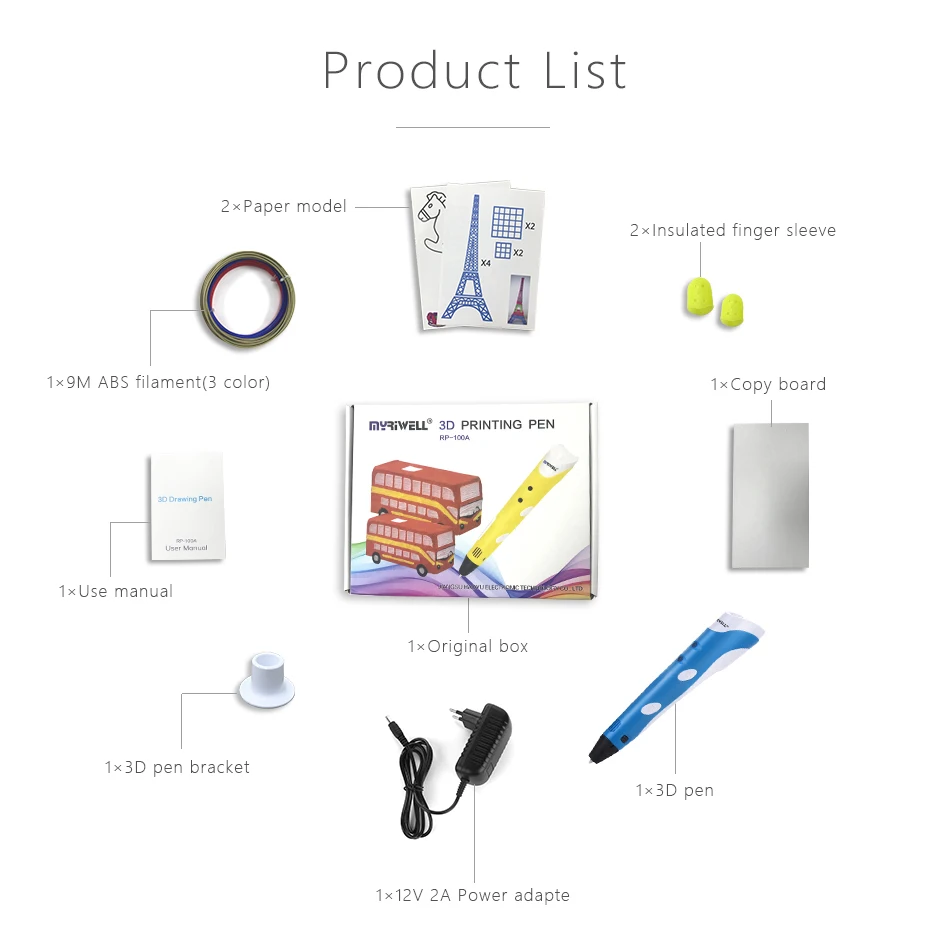 Ручки для 3d-печати Myriwell, АБС-пластик 1,75 мм, умная 3d-ручка с нитью для детей, инструменты для обучения детей, игрушки для хобби