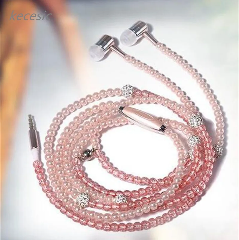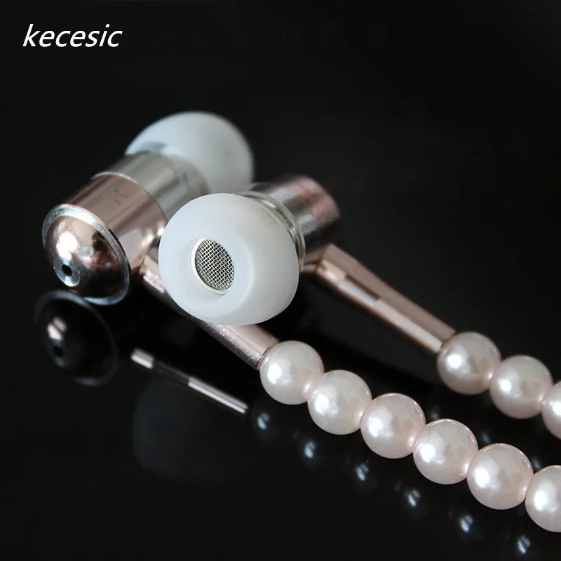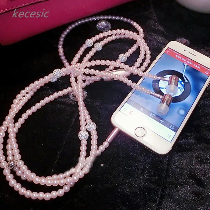 Наушники с жемчужным ожерельем, для девочек, с микрофоном, kecesic, для iphone 6, 6s, samsung