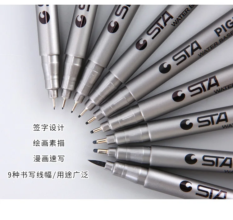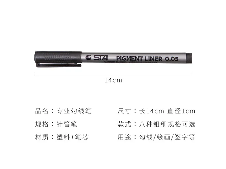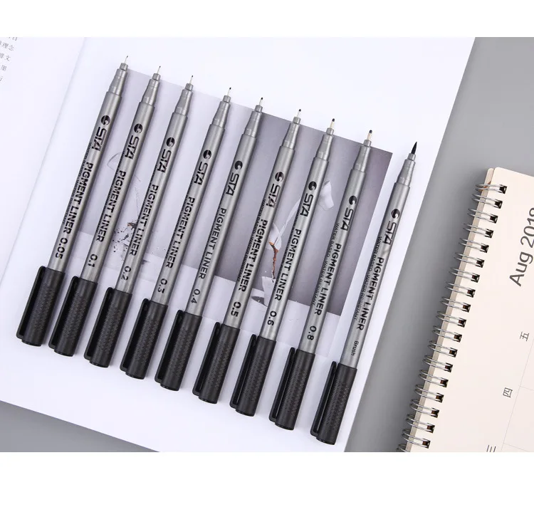 Пигментный лайнер Pigma Micron, 1 шт., чернильный маркер 0,05, 0,1, 0,2, 0,3, 0,4, 0,5, 0,6, 0,8, черные ручки для рисования Fineliner с разным наконечником