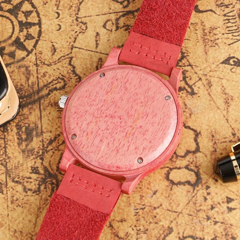 Роскошные деревянные красные бамбуковые кварцевые наручные часы, модные женские, мужские, с ремешком из натуральной кожи, деревянные часы, подарок, мужские часы