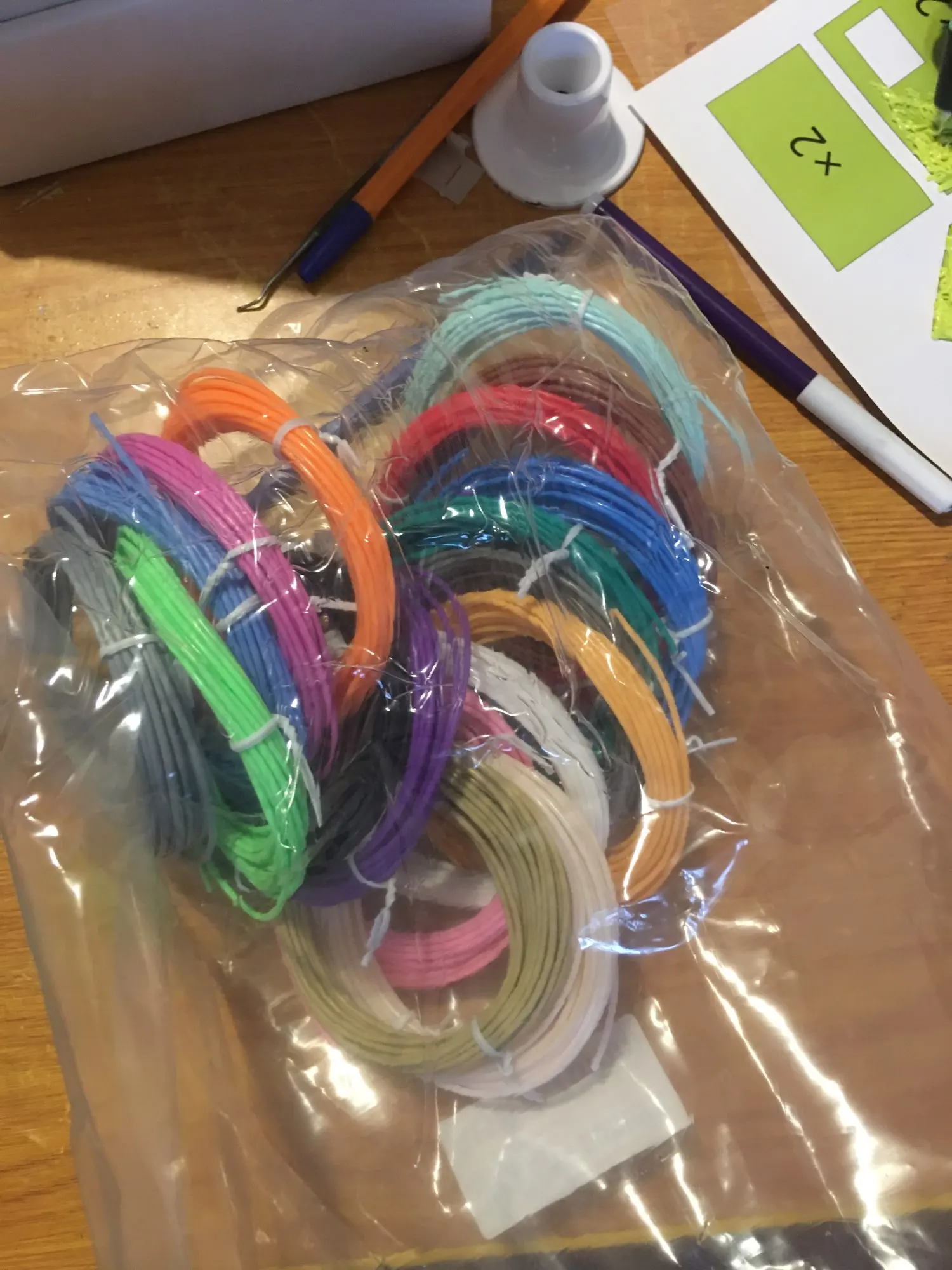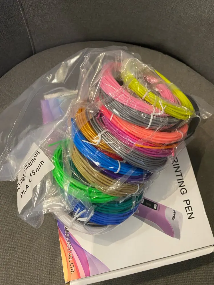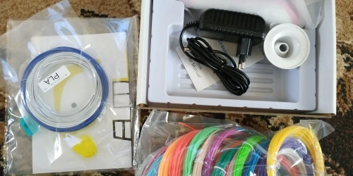 Посылку получил через почту. Доставка просто молнееносная, так быстро из Китая я ещё ничего не получал. Шла всего неделю. Ручка классная. 2 скорости рисования по подаче филамента. Плавная регулировка температуры. Ребёнок просто в восторге. Советую брать в набор дополнительно филамент. В стандартном наборе всего 3 цвета и прутки короткие. Очень хороший подарок детям на праздники до 12 лет. Берите. Своих денег, определённо стоит.