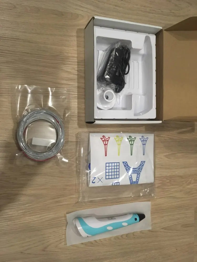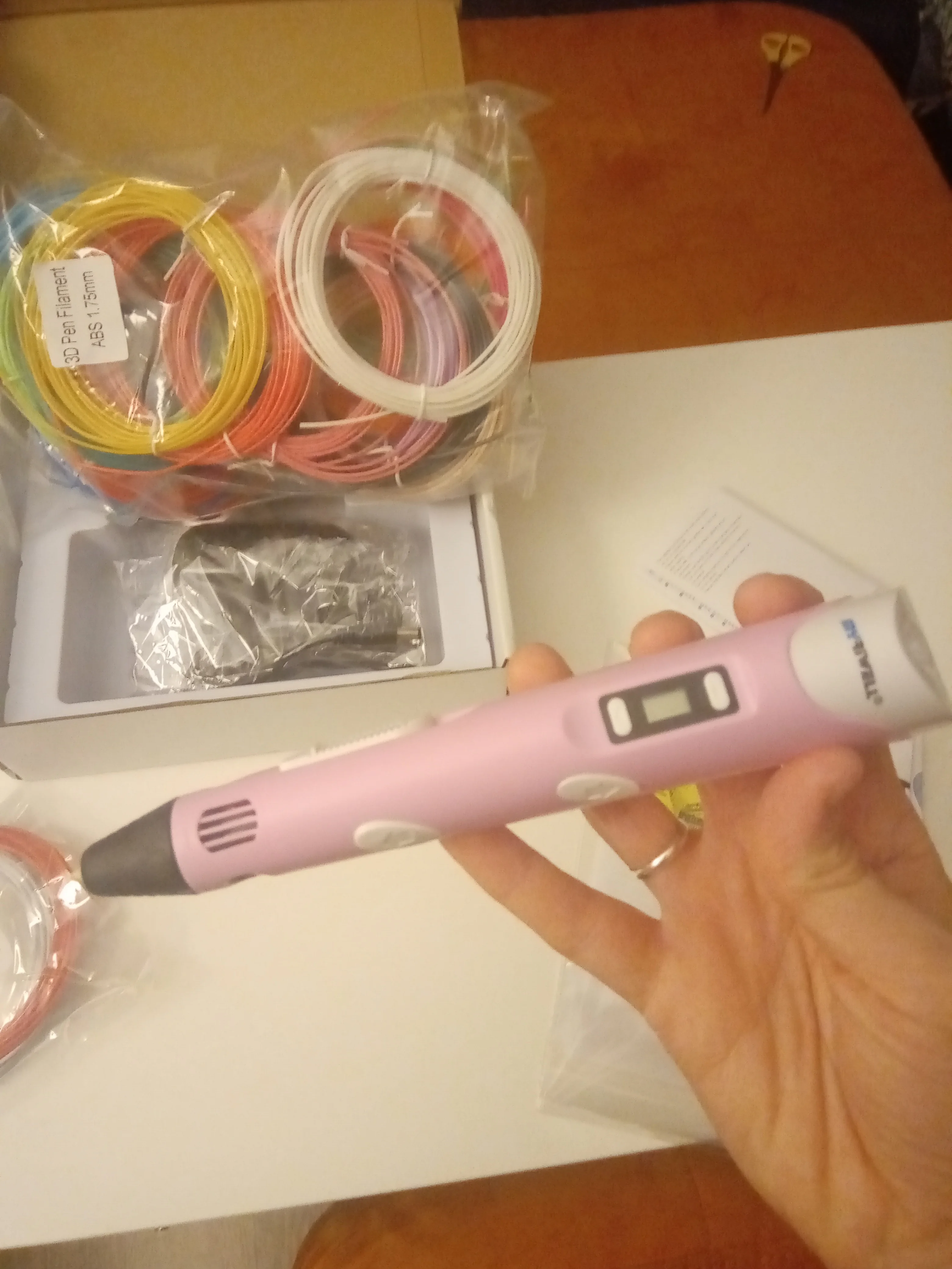 3Dручка пришла довольно быстро. Очень хорошо упакована. В фирменной коробке, в упаковке 2 мотка пластика. Дополнительный пластик, разноцветный пришел вместе с ручкой. В деле не пробовали, подарок на Новый год ребёнку. Попробуем дополню отзыв.