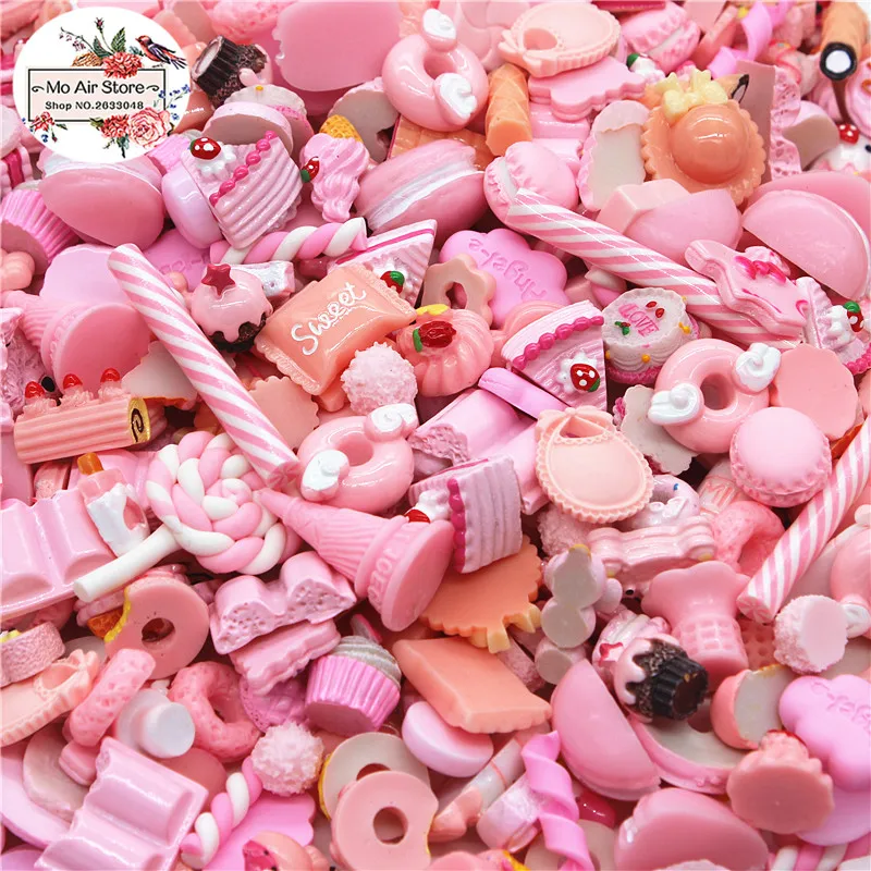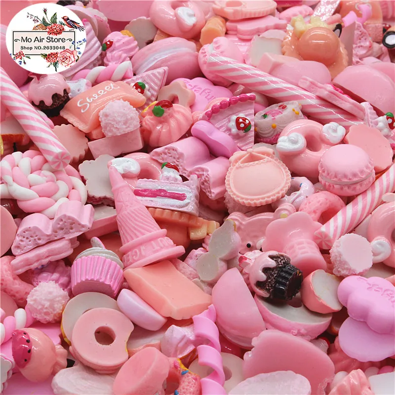 Смешанный дизайн десерт розового цвета, 20 шт., кабошон из смолы с плоской задней стороной, художественное украшение, очаровательное ремесло