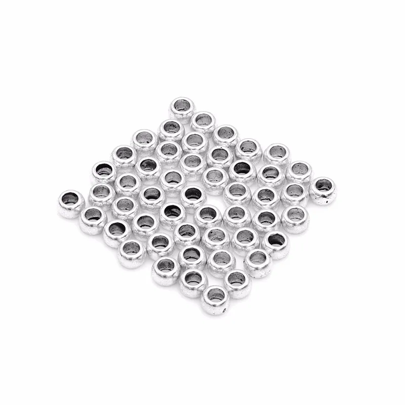 50 шт.лот цинковый сплав антикварные винтажные Посеребренные Круглые бусины-разделители с большим отверстием Сделай Сам Изготовление ювелирных изделий для ожерелья браслета
