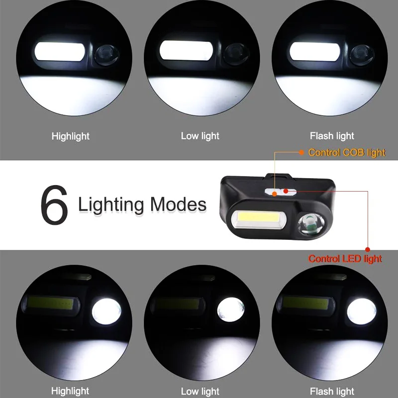 ★Шесть режимов ---COB high light-COB low light-COB strobe-XPE high light-XPE low light-XPE strobe, легкий в переноске, мощный, фары с шестью режимами освещения для удовлетворения ваших потребностей