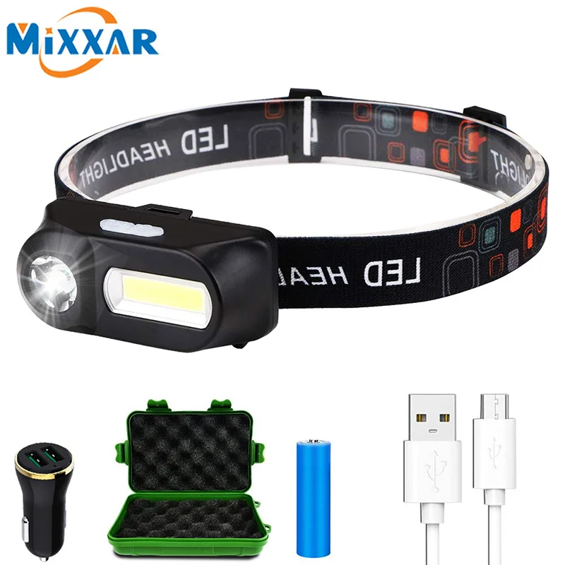 ★Яркий свет ---В этот удобный налобный фонарь встроены светодиоды и COB, что позволяет осветить окружающую среду в темноте.