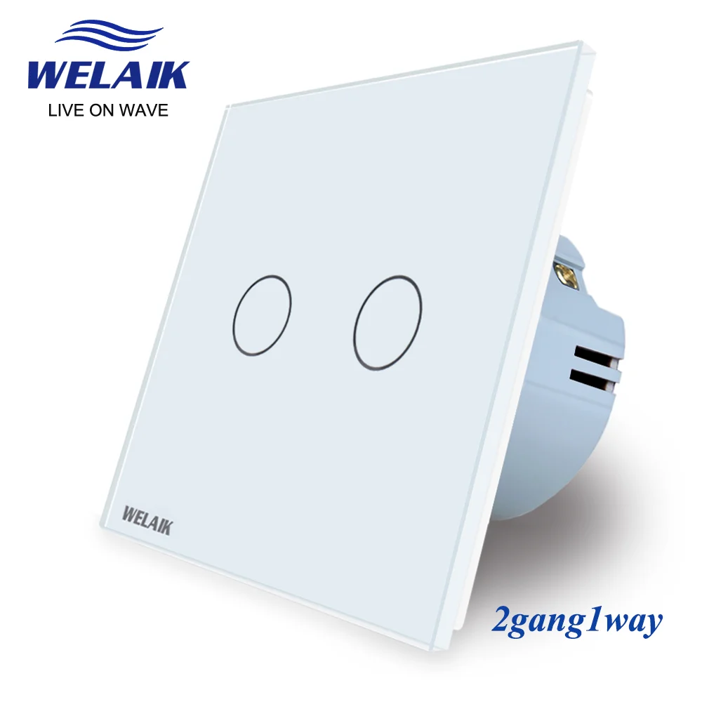 Welaik Кристалл Стекло Панель переключатель Белый настенный выключатель ЕС сенсорный выключатель Экран настенный выключатель света 2gang1way AC110 250 В a1921cwb