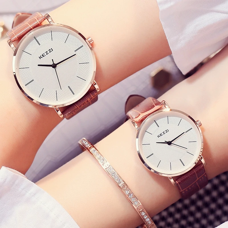 KEZZI ультра тонкие женские часы класса простые белые мужские женские кожаные часы модные повседневные водонепроницаемые кварцевые часы для влюбленных 1/шт