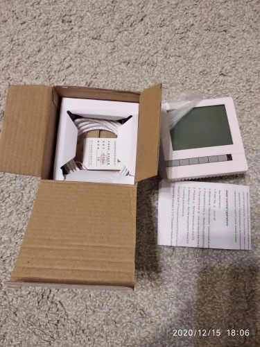 Уже 4 термостат который у вас купили, работают хорошо, в каждой коробке термостат, датчик тепла, инструкция по подключению и программированию в автоматическом режиме.Изготовлен из качественных материалов, клеммник подключения тоже надежный.По цене на 5-7 раз выгоднее чем в магазине ( аналоги стоят 2000-2800 грн ~ 100$) . Однозначно рекомендую.
