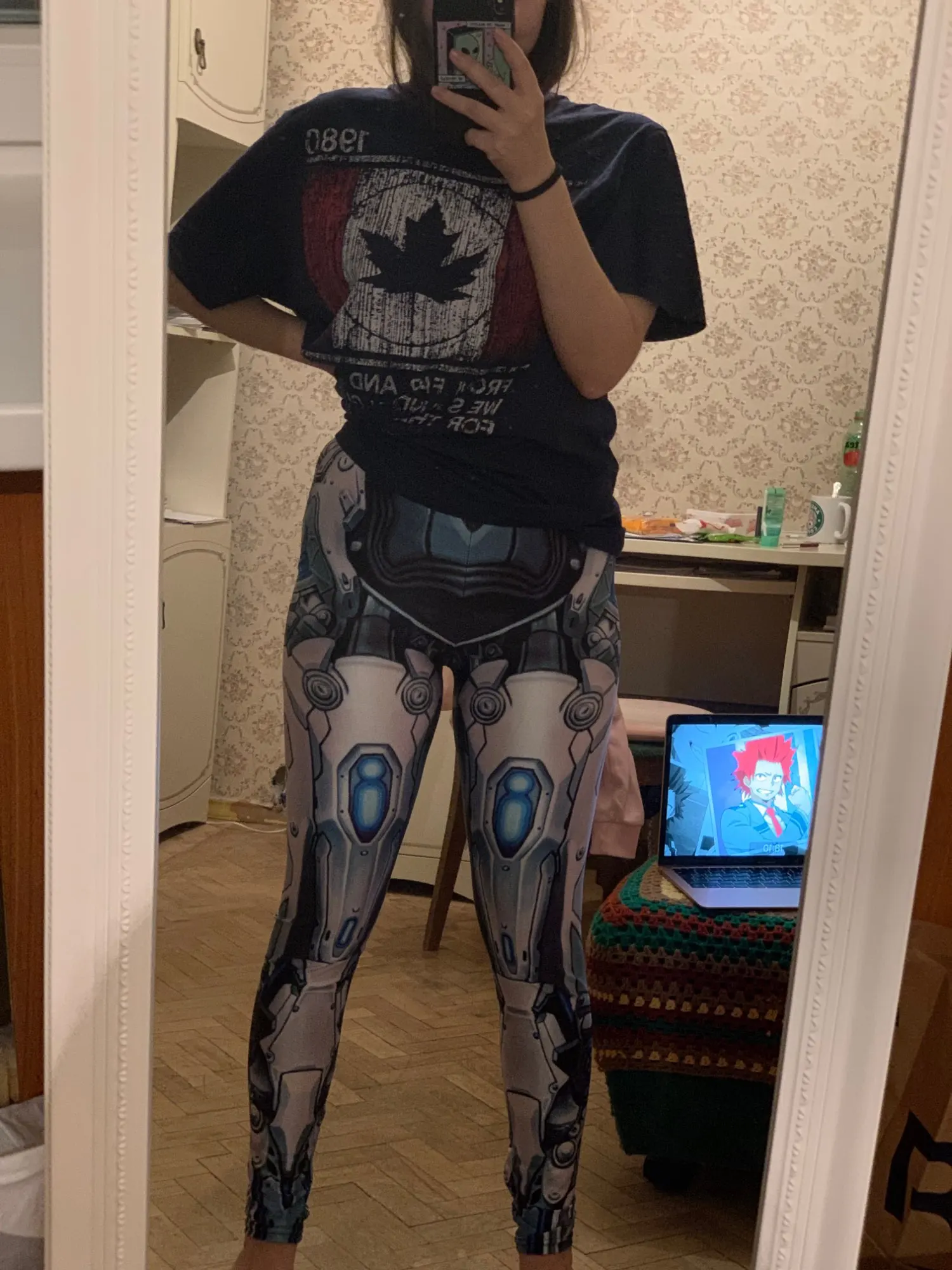 Леггинсы класс. Дошли за месяц до Москвы. На рост 160, размер не помню какой взяла, написано на бирке М, короче по длине идеально, так что тем, кто выше скорее всего коротковато будет чутка, но не критично. Взяла чисто потому что хотелось хоть одни такие странные смешные леггинсы хех